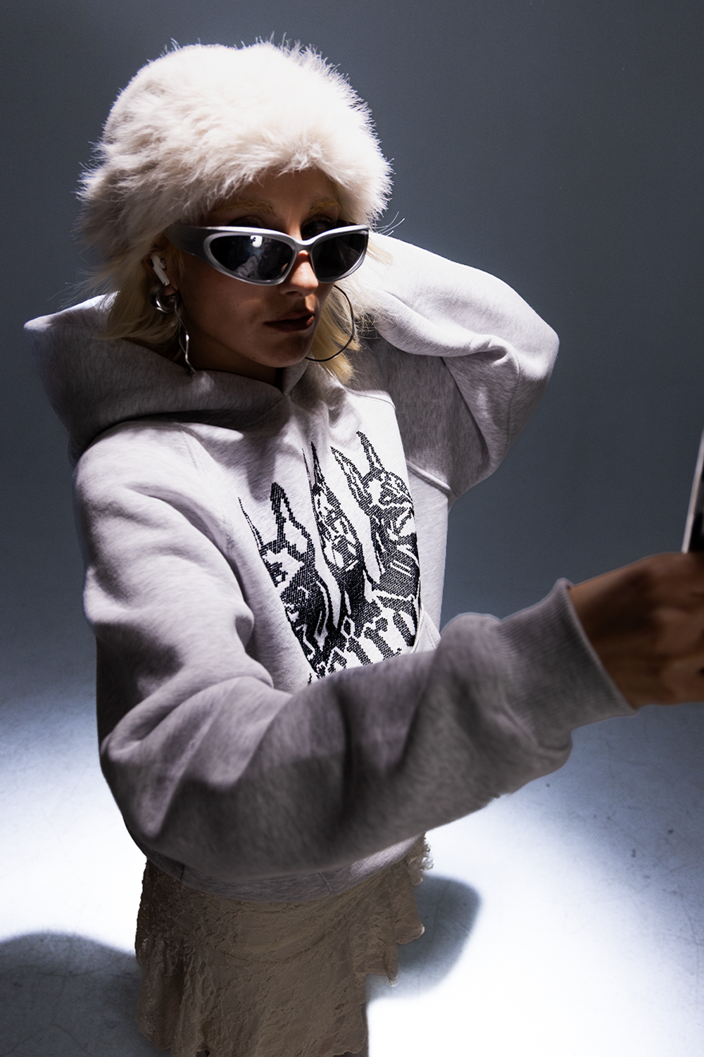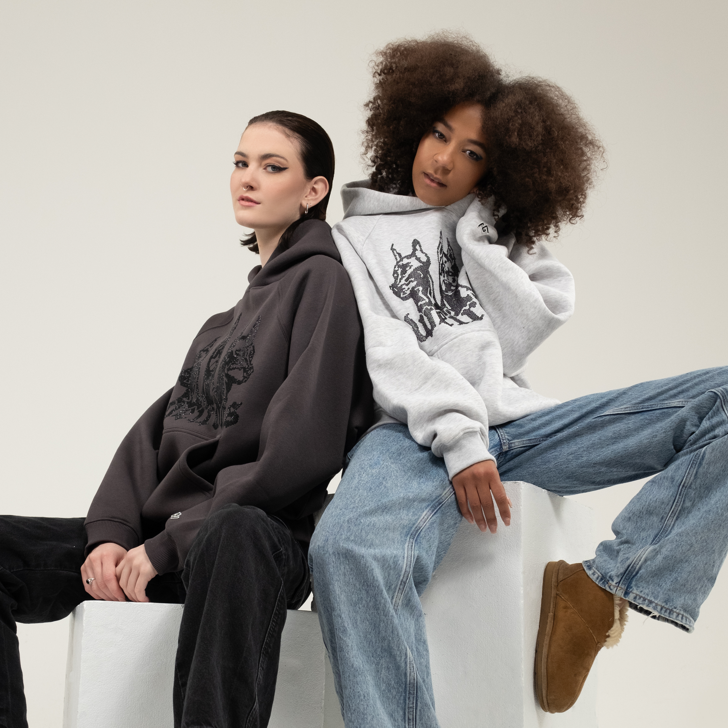 GREY FOG rhinestone oversized hoodie